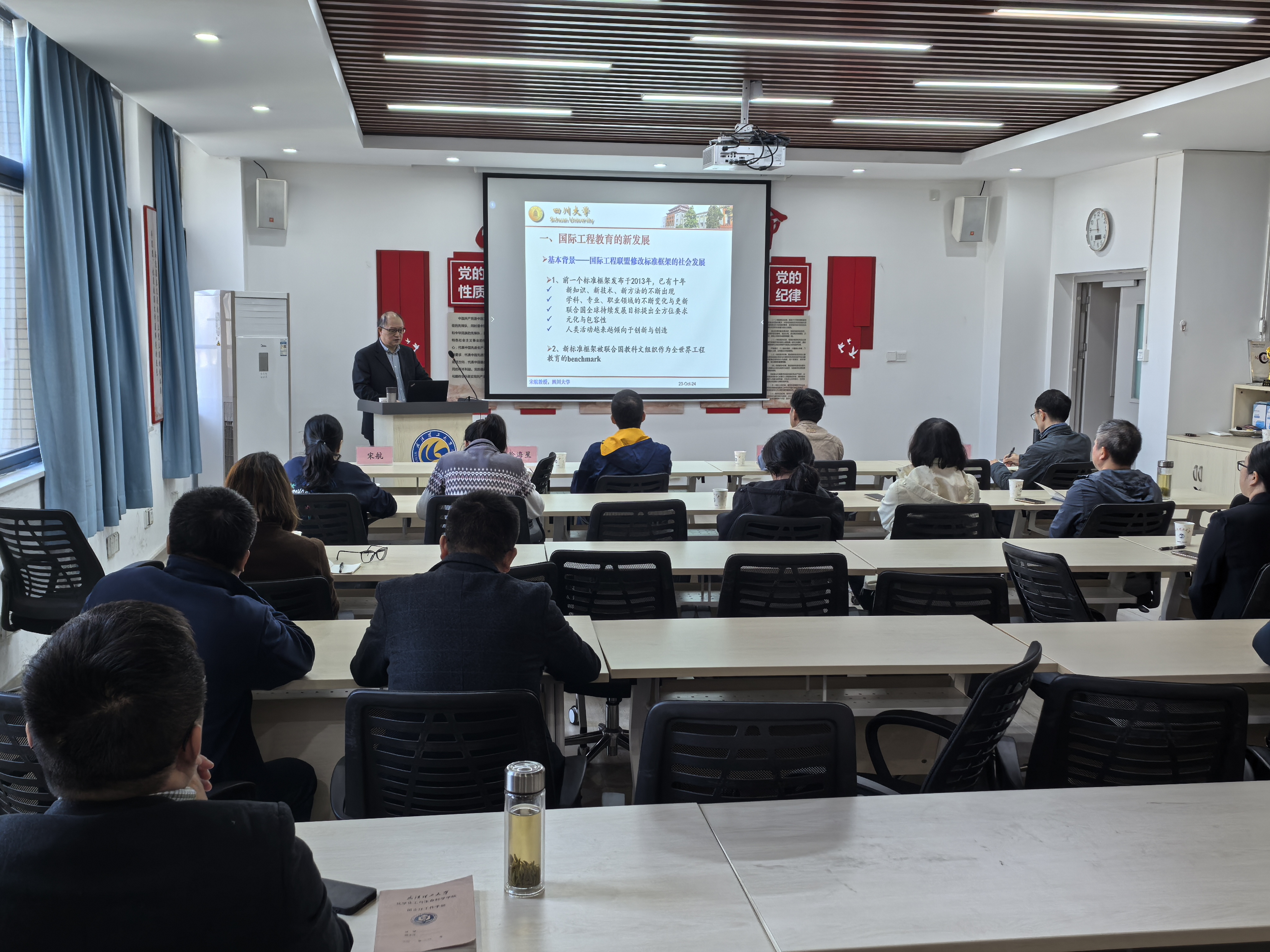讲座中,宋航教授介绍了国际上工程师相关组织机构近年来提出的对于工程师职业工作范围、工程师目标任务、工程能力的知识基础和态度的变化,以及基于这些变化,华协组织修订的国际工程教育人才的毕业要求新内涵、新要求,并结合认证新变化、新要求以及智能制造发展技术和社会发展态势,强调了以学生为中心的教育理念,指出了老师在教学过程中对学生的学习能力、创造性思维及能力、执行意识及能力等方面培养的重要性。