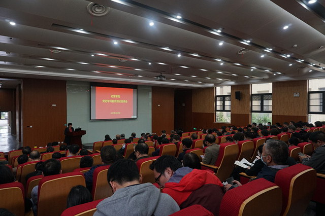 报告会前,陈文副校长为学院师生开展好党史学习教育进行了联学导学。陈校长强调,党的历史是最生动、最有说服力的教科书,广大师生要围绕六个方面加强党史学习,从党的百年伟大奋斗历程中、从党开创和不断推进的伟大事业中,从党全心全意为人民服务的根本宗旨和长期实践中,汲取继续前进的智慧和力量,汲取促进学院学科专业发展的智慧和力量,不断坚定前行的动力,切实做到学史明理,学史增信,学史崇德,学史力行;切实做到科学谋划好学院“十四五”发展规划,适应国家战略发展需求,强化专业特色,加强学院内涵建设,提高人才培养质量,团结一致,共同推动学院发展。