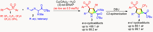 黄毅勇教授课题组还基于目前亚胺与联烯之间的亲核性催化反应体系只涉及两性离子反应中间体的研究现状,突破现有反应模式,创新性的提出用噁唑烷酮衍生的联烯酰亚胺代替联烯基酯,在叔膦催化剂作用下生成手性双亲电性中间体,最终实现首例联烯与亚胺、烯胺和酰胺之间的[4 + 1]环加成反应,分别构建了全取代烯胺酮、含全碳手性中心的β-酮亚胺及γ-内酰胺等重要骨架分子,将为发展一系列联烯酰亚胺与不同类型双亲核试剂的不对称[4 + n]环加成反应及一些天然产物的简洁合成奠定重要基础。论文同样发表在化学领域顶级期刊《Angew. Chem. Int. Ed. 2019, ASAP, DOI: 10.1002/anie.201912263》,第一作者为硕士研究生曹泽混,黄毅勇教授为唯一通讯作者。