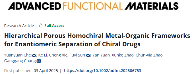 车圆圆副教授课题组关于分级孔同手性金属有机框架材料在手性药物中的拆分应用和主-客体拆分机制研究方面取得重要进展,相关研究成果在线发表于材料化学顶级期刊《Advanced Functional Materials》上(Hierarchical Porous Homochiral Metal-Organic Frameworks for Enantiomeric Separation of Chiral Drugs)。金沙集团