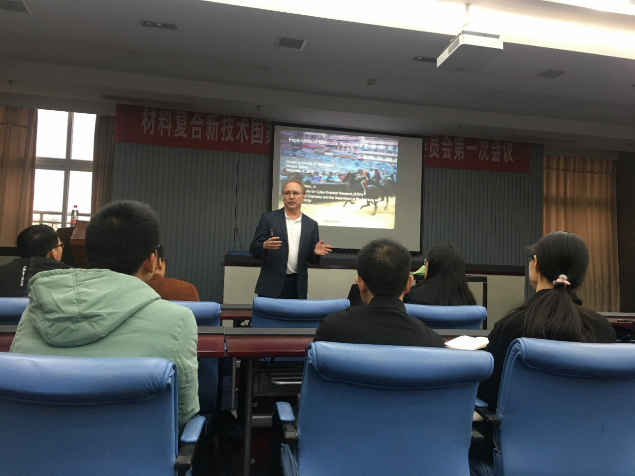 12月4日下午16:00,密歇根州立大学教授Dr. Kenneth M. Merz, Jr.在金沙集团 西院逸夫楼10楼报告厅举行了学术报告,向同学们介绍了活字法用于蛋白质配体的结合。金沙集团 郑铮老师、沈雷老师等多位老师参加了本次报告,金沙集团 2017级、2018级研究生也积极参与其中。