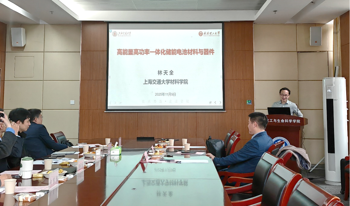 2025年11月9日上午9时,应金沙集团 电能源化学与先进储能材料团队刘金平教授邀请,上海交通大学材料科学与工程金沙集团 副院长、国家优青、博士生导师林天全教授到访,并于南湖校区化生大楼S217会议室为师生带来了一场题为《高能量高功率一体化储能材料与器件》的前沿学术报告。报告会现场座无虚席,气氛热烈。