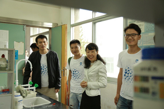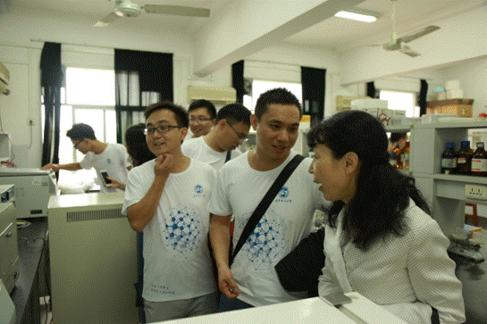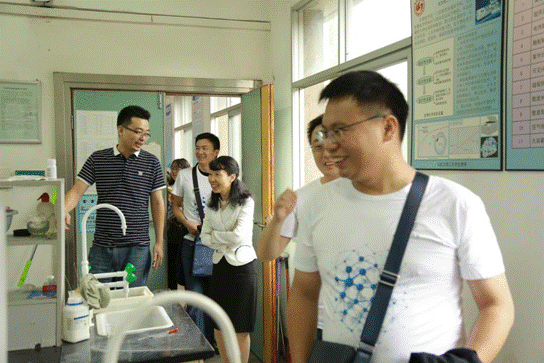 生物系孙恩杰老师,班宜辉老师,以及在校的部分学弟学妹们,已经等候在实验室迎接首届学子返校。孙老师带领大家依次参观了各个实验室。