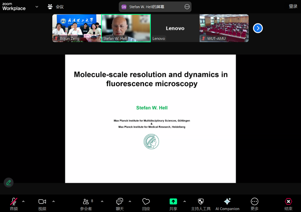 5月13日下午,诺贝尔化学奖得主Stefan W. Hell教授应邀出席我校材料交叉前沿讲座,通过线上方式作题为“Molecule-scale resolution and dynamics in fluorescence microscopy”的学术报告,线上线下550余名师生参加。讲座由王发洲副校长主持。